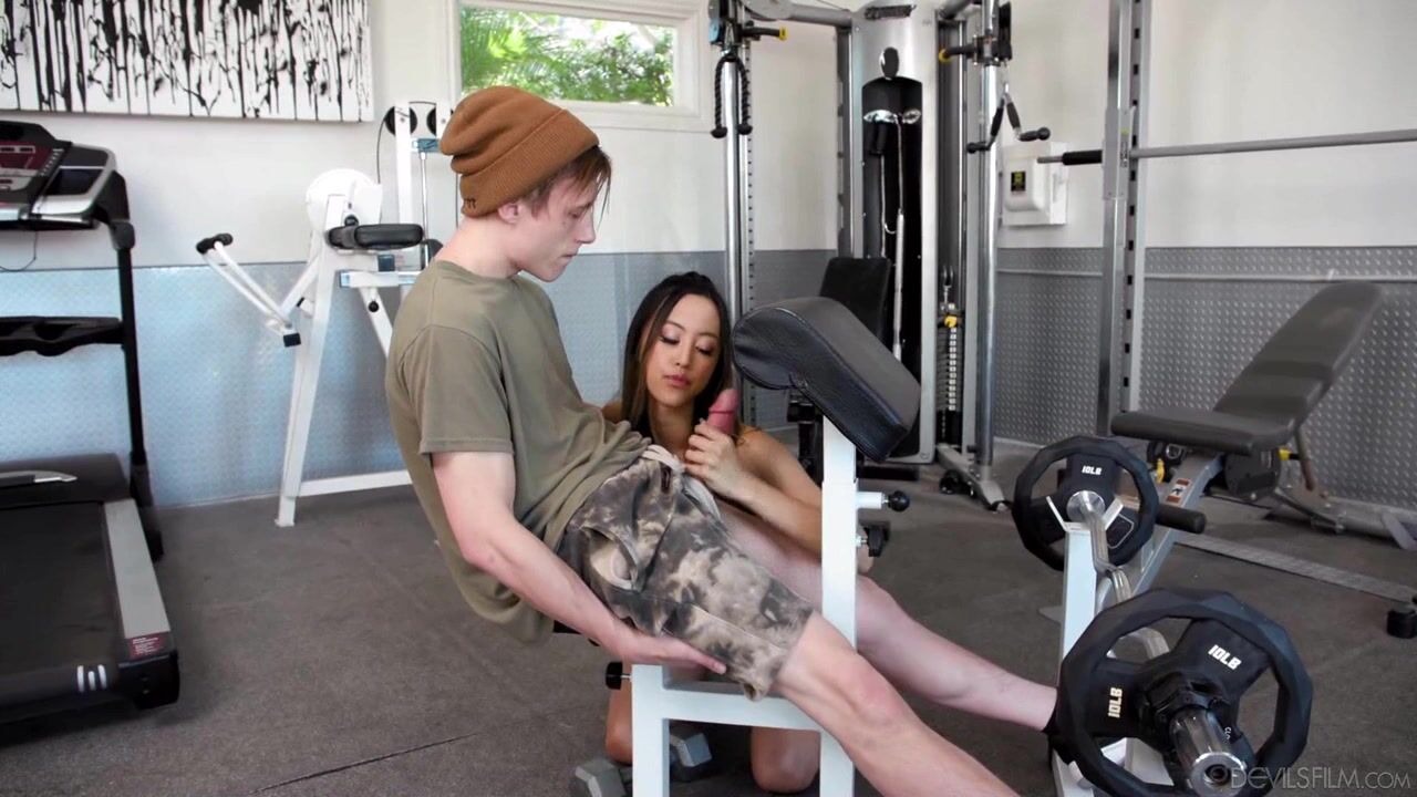 Stepdaughter Alexia Anders gives a sloppy blowjob in the gym while stepmom London Rose watches