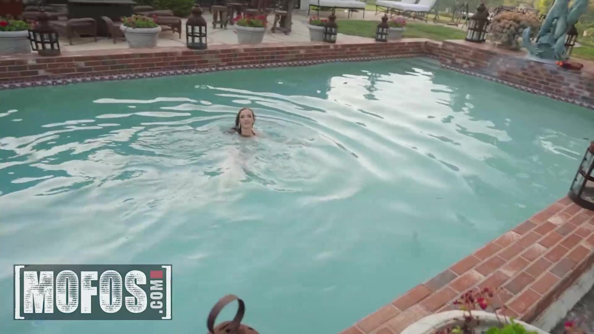 MOFOS - Stunning brunette Karla Kush rides cock inside her outdoor pool