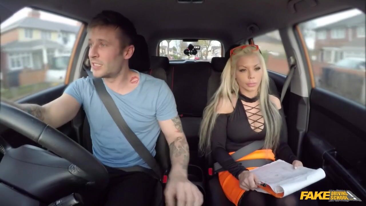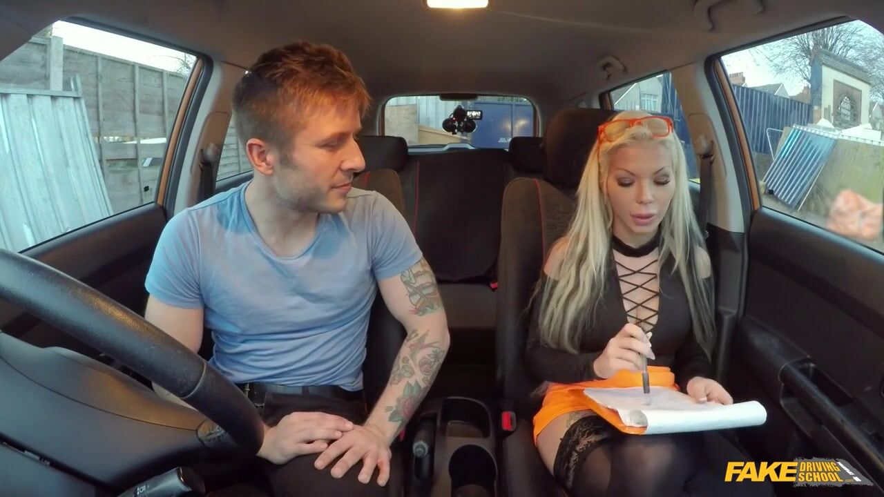 Fake Driving School - Busty blonde Barbie Sins reveals her huge boobs