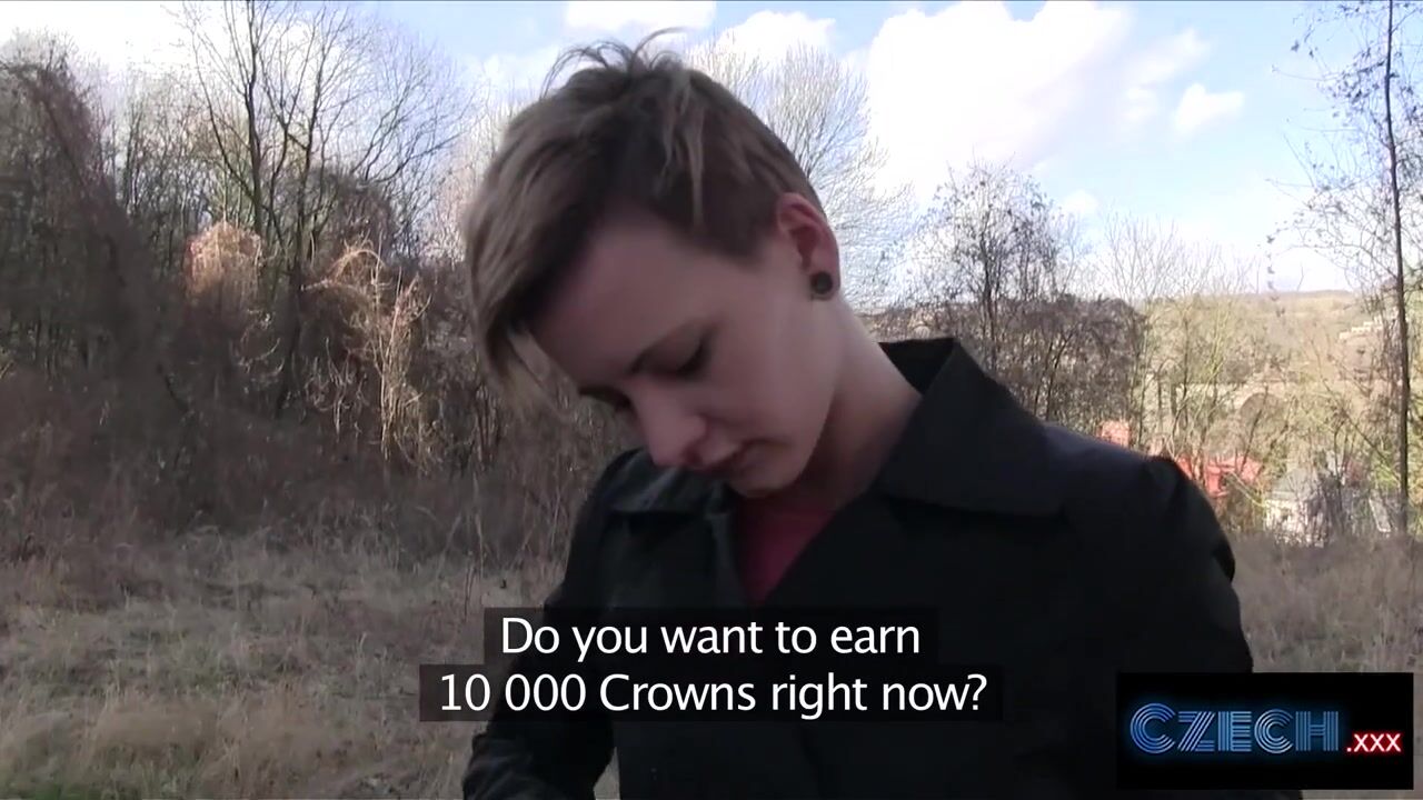Short haired Czech woman fucks stranger for cash in his car